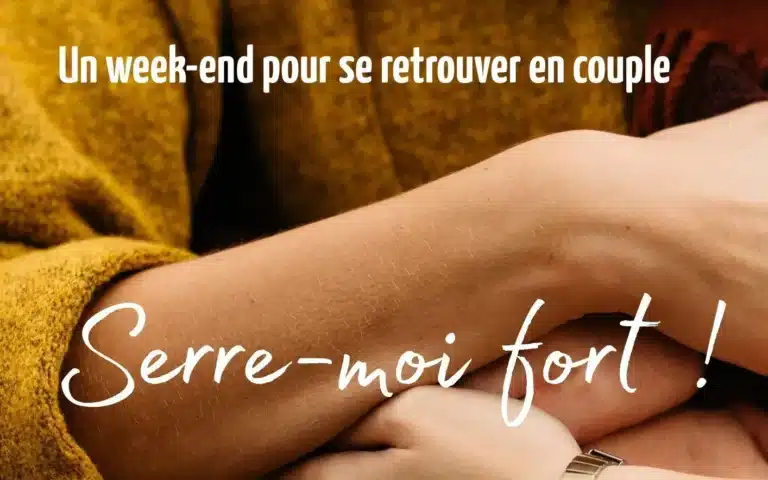 Serre-moi fort ! ®Un atelier sur un week-end pour se retrouver en couple Marre des disputes ?Envie de retrouver de la complicité ?De communiquer autrement ?Ou juste de prendre soin de votre couple ? Un couple, ça se construit, ça s’entretient, ça se répare. Durant ce week-end, découvrez une caisse à outils pour un lien …